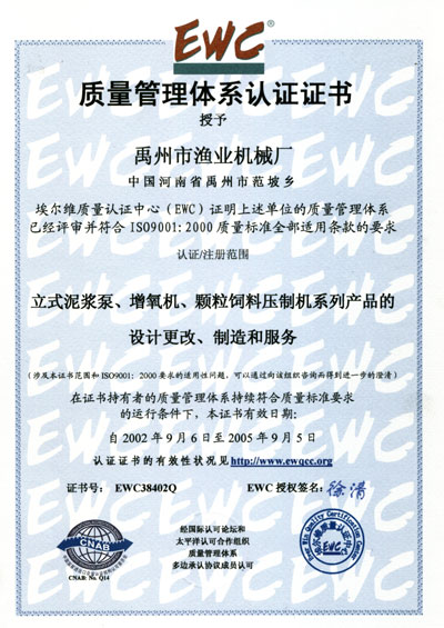----幾年來,我廠本著靠科技求發(fā)展,靠信息求市場,靠質量求生存,靠管理求效益的治廠方略,大膽進行改革,建立起一套全新的運行機制。2002年9月已通過ISO9001:2000國際質量管理體系認證;在2000年12月榮獲河南省科學技術廳“科技企業(yè)證書“;2001年7月獲河南省科學技術廳“高新技術產(chǎn)品證書“;2001年12月獲河南省科學技術廳“高新技術企業(yè)認定證書“;曾獲河南省鄉(xiāng)鎮(zhèn)企業(yè)名牌產(chǎn)品稱號。